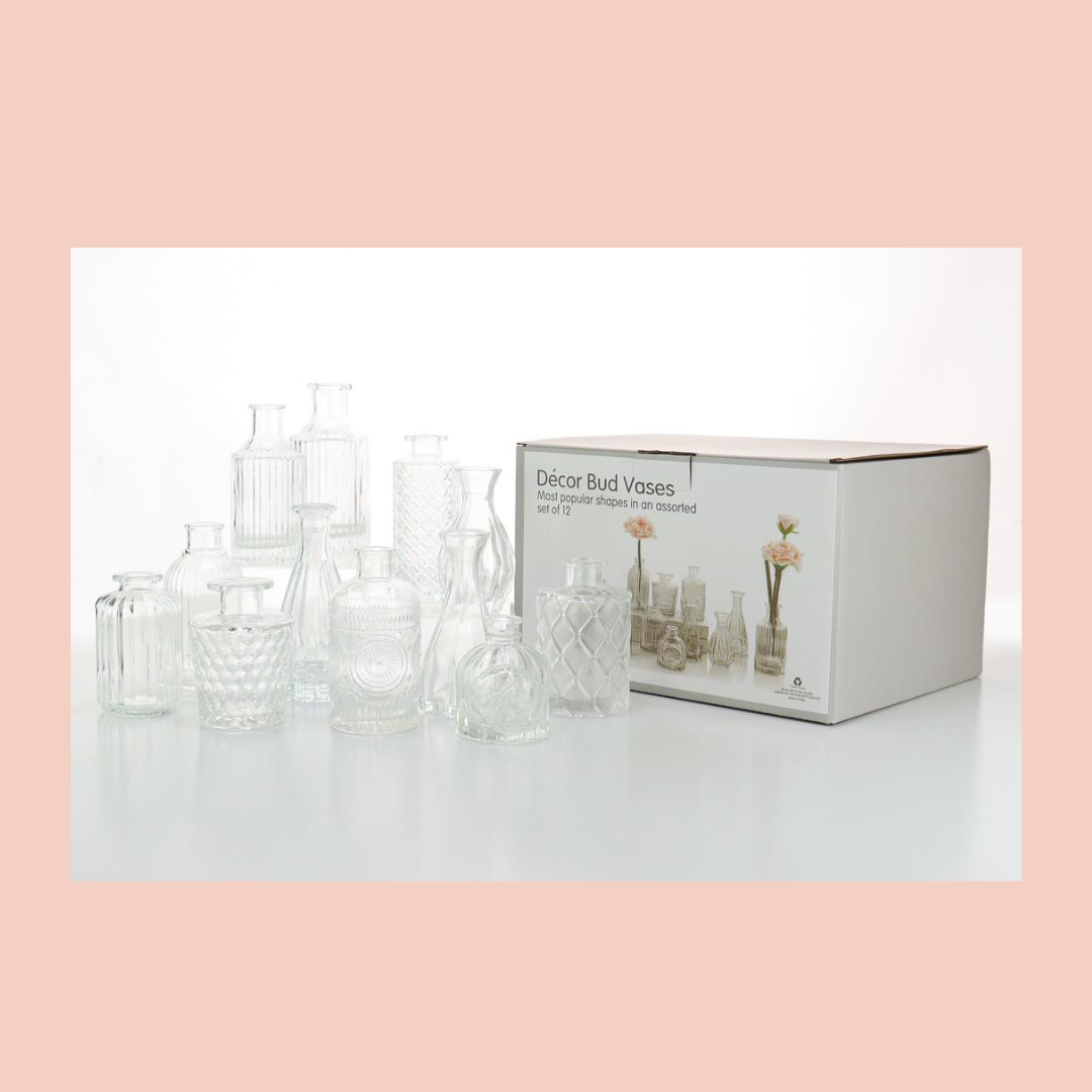 Assorted Vintage Bud Vases Set of 12 - Clear Glass