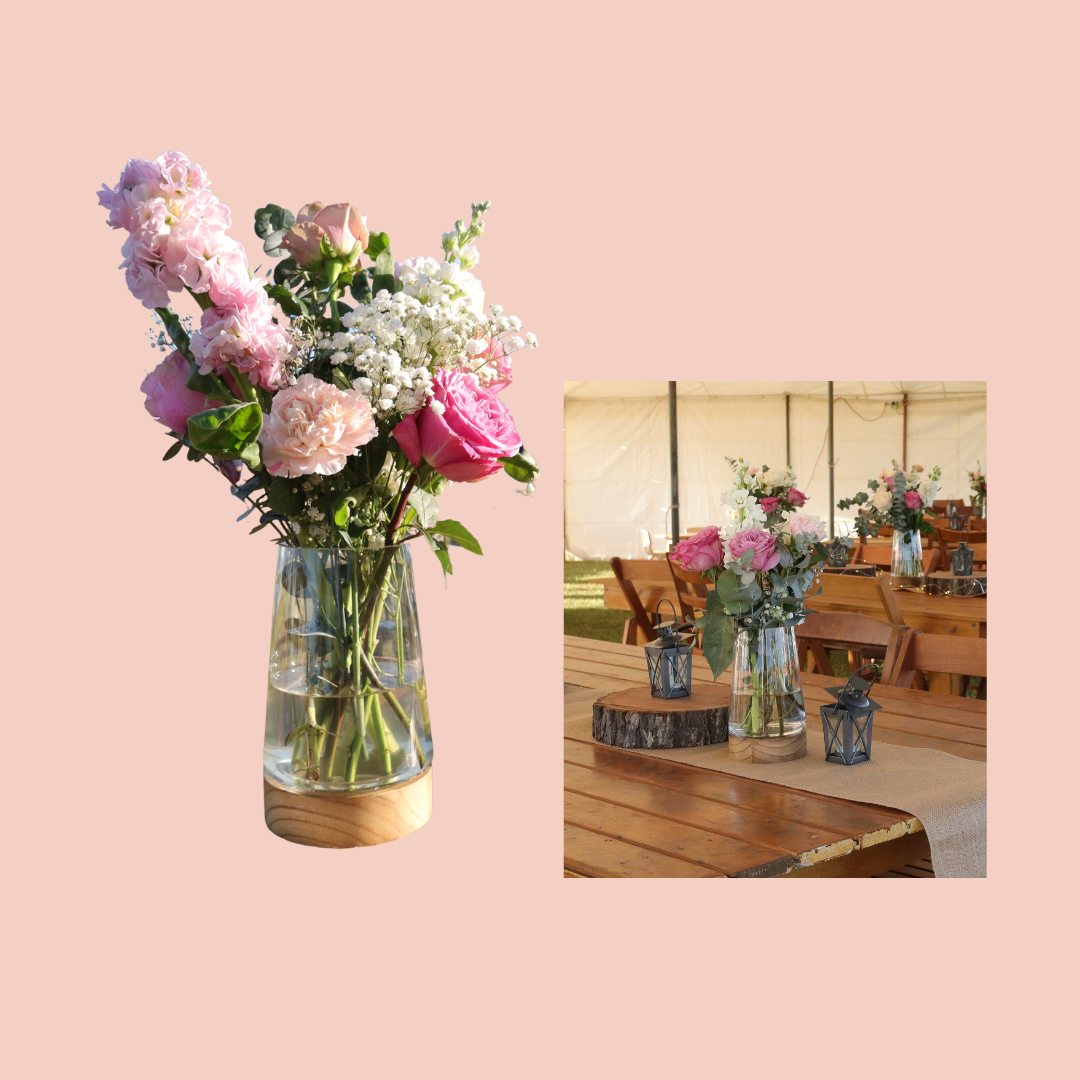 Clear Glass Vase with Timber Base