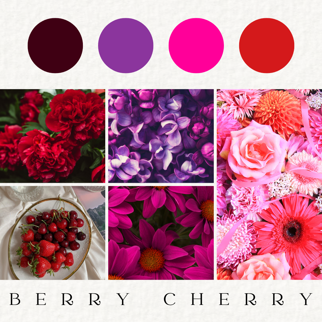 Colour Palette - Berry Cherry - Berry pinks, reds, rich and moody tones.
