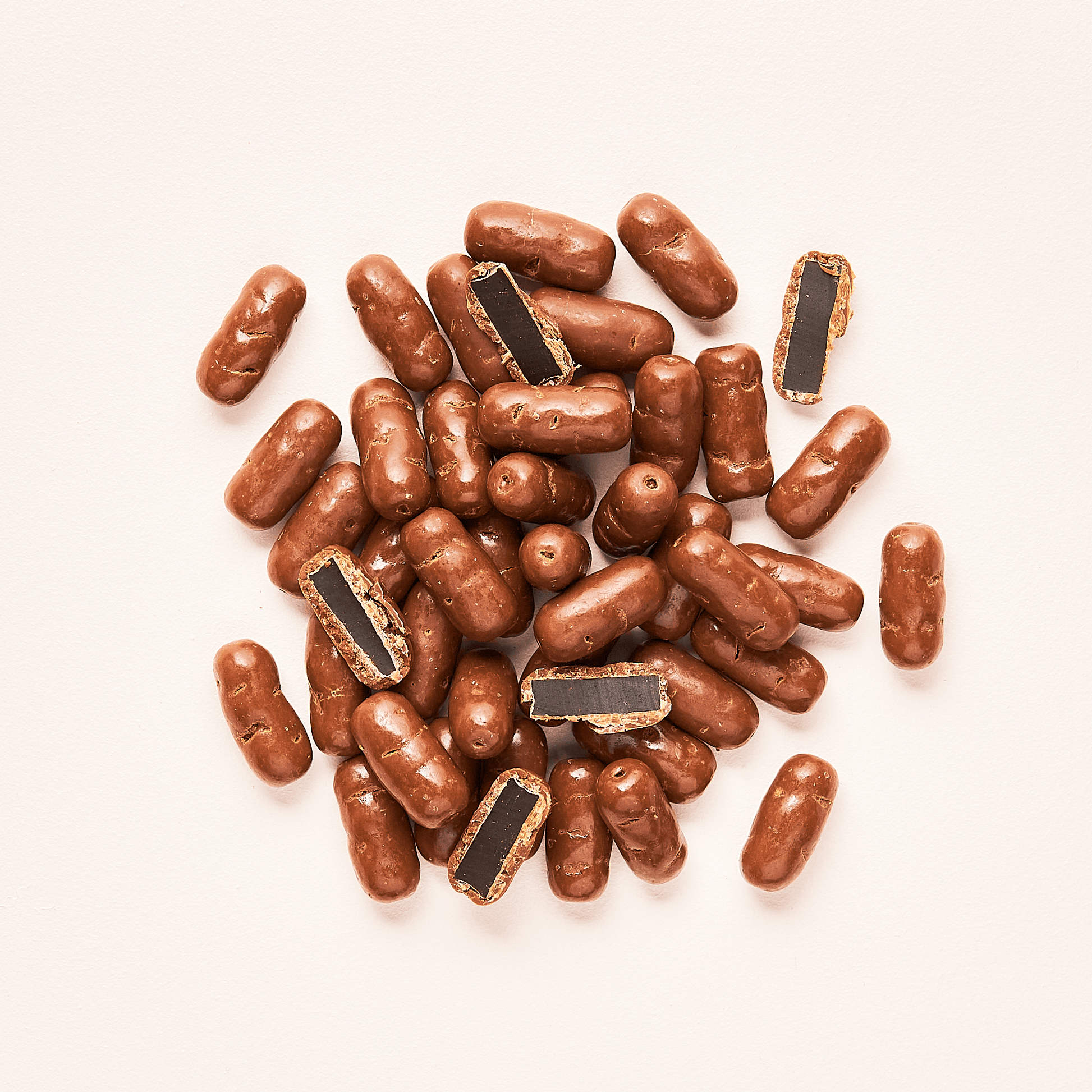 These bite-size liquorice pieces get the Coated treatment with a thick layer of premium milk chocolate. We’ve found the perfect chocolate to liquorice ratio for this classic lolly — try it and see for yourself!